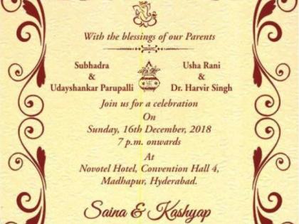 सायना आणि पी.कश्यप येत्या 16 डिसेंबरला लग्न करणार आहेत. आता तर त्यांच्या लग्नाची पत्रिकाही वायरल झाल्याचे पाहायला मिळत आहे.
