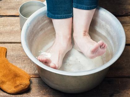 ४) बेकिंग सोड्याने पायांना स्क्रब करा. याने टाचांना पडलेल्या भेगांनी होणाऱ्या वेदना आणि सूज दूर होईल. पायांच्या बोटांमध्ये फंगसही होणार नाही.