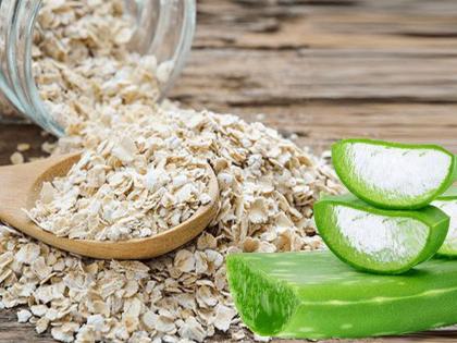 अॅलोव्हेरामध्ये असलेल्या अँटी-इन्फ्लेमेटरी एलिमेंट पिंपल्स, टॅनिंग आणि इन्फेक्शन्ससारख्या तत्त्व असतात. त्यामुळे याचा वापर मेडिकल ट्रिटमेंटमध्येही केला जातो. ओटमील पावडर अॅलोव्हेरा जेलमध्ये चांगल्याप्रकारे मिश्रित करून चेहऱ्यावर मसाज करा. ३ ते ५ मिनिटांची मसाज करून पेस्ट कोरडी होऊ द्या. नंतर चेहऱ्या पाण्याने स्वच्छ करा. तेलकट त्वचेसाठी हा सर्वात चांगला उपाय मानला जातो.