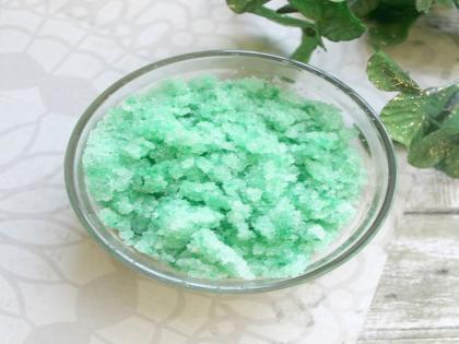 2 चमचे ऑलिव्ह ऑइल किंवा खोबऱ्याच्या तेलामध्ये 2 चमचे साखर, 8 ते 10 थेंब पुदिन्याचं तेल, अर्धा चमचा द्राक्षांच्या बियांचं तेल एकत्र करून स्क्रब तयार करा. पुदिन्याचं तेल ओठांमधील रक्तप्रवाह वाढवतं, त्यामुळे ओठ आकर्षक दिसतात. तसेच द्राक्षांच्या तेलात अॅन्टीऑक्सिडंट मुबलक प्रमाणात असतात. त्यामुळे ओठ मुलायम होण्यास मदत होते.
