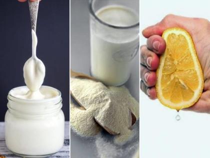 2. दुधाची पावडर + दही + लिंबू