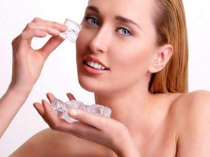 - ऑयली स्कीन असलेल्यांनी बर्फाच्या थंड पाण्याचा वापर करणंही फायदेशीर ठरतं. यामुळे फक्त चेहरा हायड्रेट होत नाही तर चेहऱ्यावरील डाग आणि पुरळही दूर होण्यास मदत होते. त्वचेवर ग्लो आणण्यासाठीही चेहऱ्यावर बर्फाने मसाज करणं हा उत्तम पर्याय आहे.