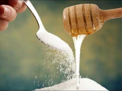 मध आणि साखरेचे सौंदर्याच्या दृष्टीने फार महत्व आहे. एका बाऊल मध्ये १ चमचा मध, १ चमचा ऑलिव्ह ऑईल, ४ चमचे साखर घाला. मग थोडंस पाणी घालून हे मिश्रण एकत्र करा. या स्क्रबने केसांची मसाज करा. मग २० मिनिटांनी केस धुवून टाका. स्काल्पवरची डेड स्कीन काढून टाकण्यासाठी तसचं केसांची वाढ होण्यासाठी हे स्क्रब फायदेशीर ठरत असतं. ( हे पण वाचा-कमी वयातच त्वचेवर आलेल्या सुरकुत्या दूर करण्यासाठी 'हे' फेशियल ठरेल इफेक्टिव्ह)