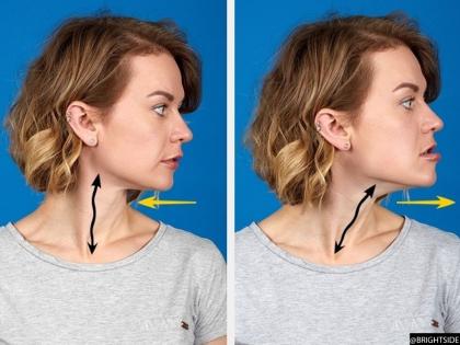 हनुवटीला दोन्ही हातांमध्ये अशा पद्धतीने धरा की हाताचे दोन्ही अंगठे हनुवटीच्या खाली येतील. केवळ अंगठ्यांच्या सहाय्याने हनुवटीला खालच्या बाजूने दाबत दाबत वरच्या दिशेने या. असे २-३ मिनिटे करा. या व्यायामामुळे मलावरोधापासून सुटका मिळते आणि पचनक्रिया सुधारते. तसेच अपचनाच्या त्रासापासून ही सुटका होते. तसंच चेहरा नाजूक दिसण्यास मदत होते.