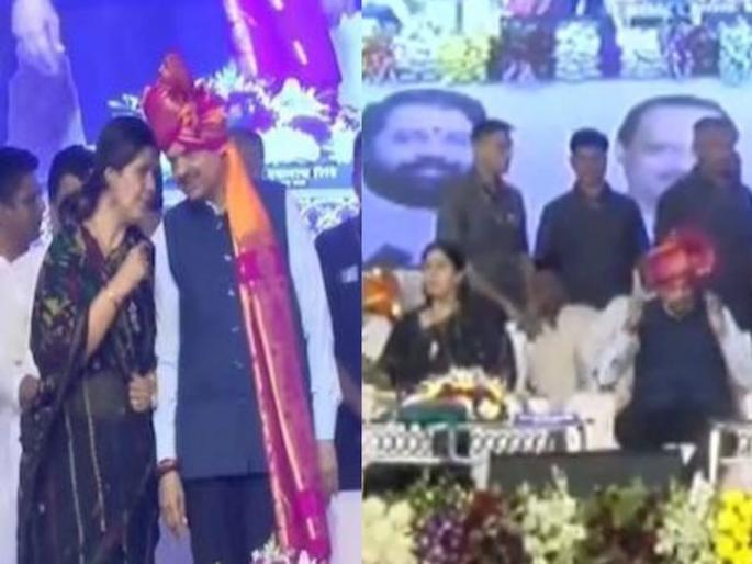 सदर कार्यक्रमादरम्यान एक मजेशीर किस्सा घडल्याचे समोर आले. एकनाथ शिंदे, देवेंद्र फडणवीस, अजित पवारांसह पंकजा मुंडे व्यासपीठावर बसल्या होत्या. यावेळी पंकजा मुंडे आणि देवेंद्र फडणवीस एकमेकांशी बोलत होते. याचदरम्यान कार्यक्रमातील सूत्रसंचालकांनी बीडच्या जिल्हाधिकारी दीपा मुधोळ-मुंडे असं नाव घेत भाषण करण्यास सांगितले. मात्र जिल्हाधिकाऱ्यांचं आडनाव देखील मुंडे असल्याने देवेंद्र फडणवीस यांना पंकजा मुंडे यांना भाषणासाठी आमंत्रित केल्यासारखं वाटलं. याचवेळी पंकजा मुंडे खुर्चीवरुन उठून थेट भाषणासाठी पुढे गेल्या. मात्र जिल्हाधिकारी दीपा मुंडे यांनी भाषण सुरु केलं. त्यानंतर पंकजा मुंडेंच्या चूक लक्षात येताच त्या लाजल्या आणि पळत आपल्या खुर्चीवर जाऊन पुन्हा बसल्या. यावेळी पंकजा मुंडे आणि देवेंद्र फडणवीस एकमेकांना टाळी देत हसताना दिसले.
