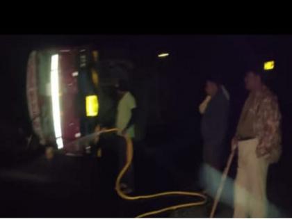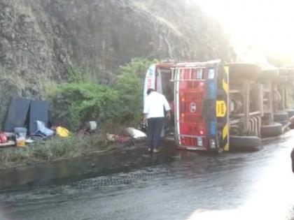 धारूर घाटात पुन्हा अपघात; कच्चे तेल घेऊन जाणारा टँकर उलटला, पोलिसांनी तत्परतेने वाहतूक केली सुरळीत