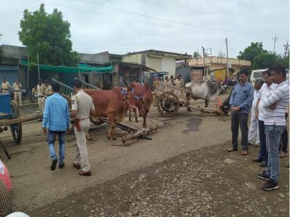 केज : तालुक्यातील कुंभेफळ येथे परिसरातील पंधरा गावच्या शेतकऱ्यांनी पिकांचे पंचनामे करून हेक्टरी एक लाख रुपये मदत देण्यात यावी यासह विविध मागण्यांसाठी सोमवारी सकाळी १० वाजेच्या सुमारास राष्ट्रीय महामार्गावर रास्तारोको आंदोलन केले. यावेळी आंदोलकांनी बैलगाड्या रस्त्यावर आडव्या लावल्याने मोठ्या प्रमाणावर वाहतूक खोळंबली होती.