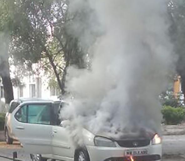जिल्हाधिकारी कार्यालय परिसरात पार्किंगमध्ये ही कार उभी होती. आगीचे कारण समजू शकले नाही. या कारच्या बाजूला वाहने नसल्याने हानी झाली नाही. नागरिक व कर्मचा-यांच्या सतर्कतेमुळे आग आटोक्यात आणण्यात यश आले.