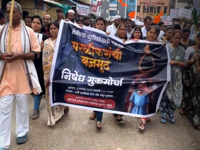 परळी ( बीड): येथील रेल्वे स्थानक परिसरात रविवारी मजुरीसाठी आलेल्या कुटुंबातील ६ वर्षीय चिमुरडीवर अत्याचार झाल्याची धक्कादायक घटना घडली. या प्रकरणातील नराधम आरोपीला फाशीची शिक्षा झालीच पाहिजे, या मागणीसाठी ३ सप्टेंबर रोजी परळीतील सामाजिक कार्यकर्ते, महिला, युवक आणि व्यापाऱ्यांनी निषेध मूक मोर्चा काढला.