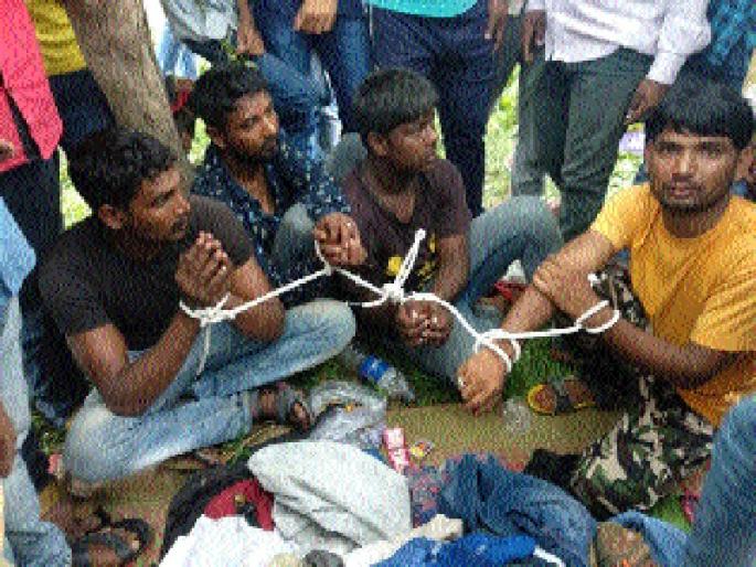 धारुर : तालुक्यातील मोहखेड शिवारात धारुर व माजलगाव तालुक्यातून चोरी केलेल्या चोरट्यांची दबा धरुन बसल्याची माहिती मिळताच मोहखेड ग्रामस्थांनी धरपकड करत चोरट्यांना सिरसाळा पोलिसांच्या स्वाधीन केल्याची घटना शनिवारी घडली.माजलगाव व धारुर तालुक्यातील काही गावात १५ दिवसांत जनावरे व घरफोडीच्या घटना घडल्या आहेत. चोरी केलेली जनावरे व घरफोडीतील साहित्यासह चोरटे मोहखेड शिवारात डोंगरावरील एका आखाड्यात दबा धरुन बसल्याची माहिती मिळाली. त्यावरुन मोहखेड ग्रामस्थांनी टाकलेल्या छाप्यात चोरी केलेली साहित्य, रस्सी, दगड, गज आदी वस्तू आढळून आल्या. तेथे उपस्थित परराज्यातील चार चोरांना पकडून ग्रामपंचायत कार्यालयात डांबले होते.सदर घटनेची माहिती सिरसाळा पोलिसांना समजताच मोहखेड येथे दाखल होत चोरट्यांना ग्रामस्थांच्या तावडीतून ताब्यात घेतले. पंधरा ते वीस चोरांची ही टोळी आहे. गेल्या काही दिवसांत तेलगांव, दिंद्रूड, कांदेवाडी, मोहखेड येथे घडलेल्या चोरीच्या घटनेत या टोळीचा हात असल्याची चोरट्यांनी कबुली दिली आहे.दरम्यान सिरसाळा ठाण्यात पकडलेले संशयित मोहम्मद जुनैद शेख इमामोद्दिन, सलीम खान, शेख ताहीर रोशन, नेहाज अलवि मोहम्मदीन या चौघांना अटक केले आहे. पुढील तपास सिरसाळा पोलीस ठाण्याचे सपोनि डोंगरे यांच्यासह पो.हे.कॉ. लांडगे व पवार करीत आहेत.