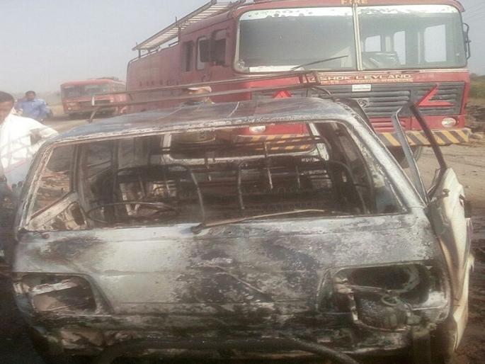 गॅसकीटवरील कारने माजलगावजवळ अचानक घेतला पेट; अग्निशमन दलाच्या तत्परतेमुळे मोठी हानी टळली