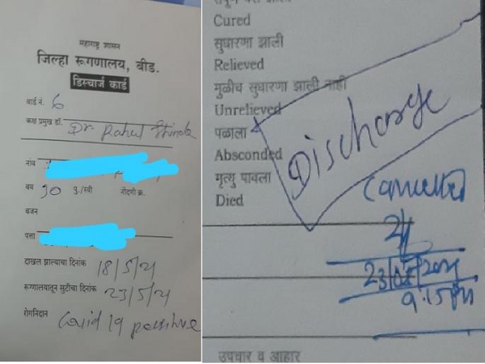 वडवणी तालुक्यातील एक रूग्ण जिल्हा रूग्णालयातील वाॅर्ड क्रमांक ६ मध्ये १८ मे रोजी दाखल झाला. १९ तारखेपासून त्याला रेमडेसिवीर इंजेक्शन व इतर उपचार सुरू करण्यात आले. आरोग्य विभागावर विश्वास ठेवून नातेवाईक बाहेर थांबले. परंतू आतमध्ये ऑक्सिजन बंद पडले तरी नर्स व इतर कर्मचारी लक्ष देत नसल्याचे उघड झाले होते. यात दोन नर्सवर निलंबणाची कारवाईही झाली होती. त्यानंतर याच रूग्णाचा २१ मे रोजी एचआरसीटी तपासणी केली असता स्कोअर १६ आला. तसेच ऑक्सिजन लेव्हलही कमी जास्त होती. उपचारही सुरूच होते. असे असतानाच रविवारी रात्रीच्या सुमारास बेड रिकामा करायचा म्हणून याच रूग्णाला चक्क डिस्चार्ज देण्यात आला. नातेवाईकांनी हा प्रकार वरिष्ठांना सांगितल्यानंतर डॉ.अशोक हुबेकर यांनी धाव घेत हा डिस्चार्ज रद्द केला. हा प्रकार मुख्य कार्यकारी अधिकारी अजित कुंभार यांनाही कळविण्यात आला. त्यानंतर आरोग्य यंत्रणेची धावपळ उडाली.