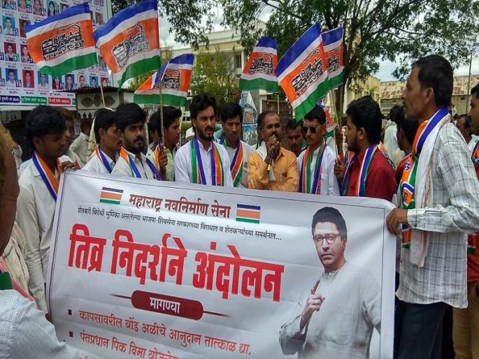 केज (बीड ) : तालुक्यातील शेतकर्यांना गतवर्षीचा खरीपाचा पिकविमा अद्याप मिळाला नाही. त्याची रक्कम तत्काळ द्यावी या प्रमुख मागणीसह बोंडअळीचे अनुदान व नाफेडने खरेदी केलेल्या पिकांची रक्कम तातडीने देण्यात यावी या मागणीसाठी तहसील कार्यालयासमोर मनसेच्या आज दुपारी वतीने निदर्शने करण्यात आली.