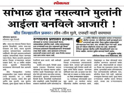 बीड जिल्ह्यातील पाटोदा तालुक्यातील एका गावातील सोनाबाई (नाव बदलले) यांना शिक्षक, सुरक्षा रक्षक व टेलरिंंगचे काम करणारी तीन मुले आहेत. मात्र, तिघांच्या वादात त्यांना कोणीच सांभाळत नव्हते. तिघांनीही आईला सांभाळण्यास असमर्थता दर्शवित आजारी असल्याचे सांगत जिल्हा रूग्णालयात दाखल केले. हाच प्रकार ‘लोकमत’ने २८ व २९ जुलै रोजी वृत्त प्रकाशित करून निदर्शनास आणला. त्यानंतर सामाजिक कार्यकर्ते तत्वशील कांबळे, अशोक तांगडे यांनी सोनाबाईची भेट घेतली. त्यांच्या मुलांशी संपर्क केला. त्यांना बोलावून घेत समुपदेशन केले. दोन मुलांनी आईची माफी मागितली. तसेच आपण घरी घेऊन जात असल्याचे लेखी लिहून देत सोनाबाईला घरी घेऊन गेले. जिल्हा रूग्णालयात खाटावर असलेल्या सोनाबाईला नंतर गादी घेतली. स्वतंत्र रूममध्ये ठेवून पंखा व इतर सुविधांची सोय केली. हे सर्व झाल्यानंतर आणि मुलांना चुक समजल्यावरच सामाजिक कार्यकर्त्यांनी घरातून काढता पाय घेतला. या सर्व प्रकारामुळे समाधान व्यक्त होत आहे.