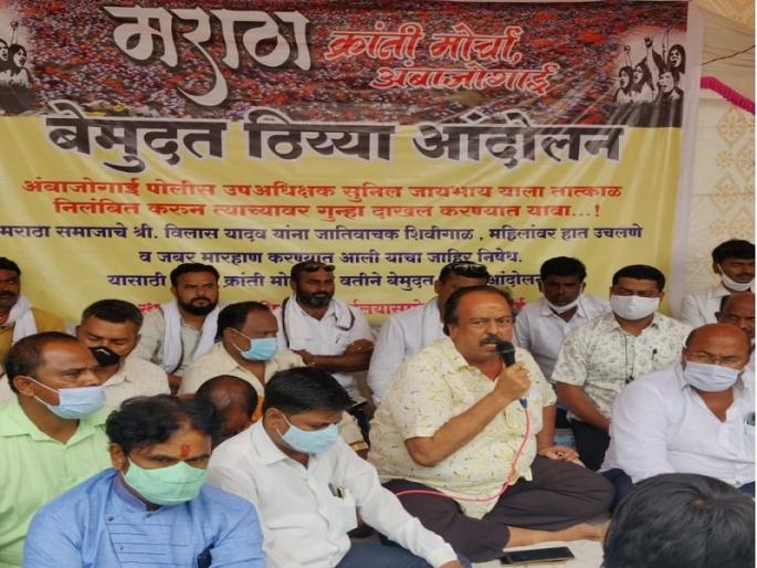 अंबाजोगाई शहर पोलीस ठाण्यात काही दिवसांपूर्वी ॲट्रॉसिटीचा गुन्हा दाखल झाला आहे. या गुन्ह्यात अंबाजोगाई शहरातील डॉ.सुहास यादव यांना जाणीवपूर्वक गुंतविण्यात आले आहे असे उपजिल्हाधिकारी यांना दिलेल्या निवेदनात नमूद करण्यात आले आहे. डॉ.सुहास यादव यांचा शोध घेण्यासाठी उपविभागीय पोलिस अधिकारी सुनिल जायभाये व त्यांचे सहकारी यादव कुटूंबियांना जाणीवपूर्वक त्रास देत आहेत. मंगळवारी रात्री या प्रकरणाचा तपास करताना डॉ.सुहास यादव यांचे चुलत भाऊ विलास यादव यांना पोलिस अधिकार्यांनी प्रशांतनगर भागात बेदम मारहाण व शिविगाळ केली, अर्वाच्च भाषा वापरली. त्यानंतर यादव यांना बळजबरीने पोलीस ठाण्यात नेऊन तिथे पुन्हा मारहाण करण्यात आली. उपविभागीय पोलिस अधिकारी हे जाणीवपूर्वक यादव कुटूंबियांना त्रास देत आहेत असे निवेदनात नमूद आहे. त्यामुळे या प्रकरणाची चौकशी करून उपविभागीय पोलिस अधिकारी व त्यांच्या सहकार्यांवर मारहाणीचे गुन्हे दाखल करावेत व त्यांना सेवेतुन निलंबित करण्यात यावे या मागणीसाठी बुधवारपासून मराठा क्रांती मोर्चाचे पदाधिकारी व कार्यकर्ते यांनी उपजिल्हाधिकारी कार्यालयासमोर ठिय्या आंदोलन सुरू केले असून आपल्या विविध मागण्यांचे निवेदन देखिल उपजिल्हाधिकारी यांना दिले आहे.