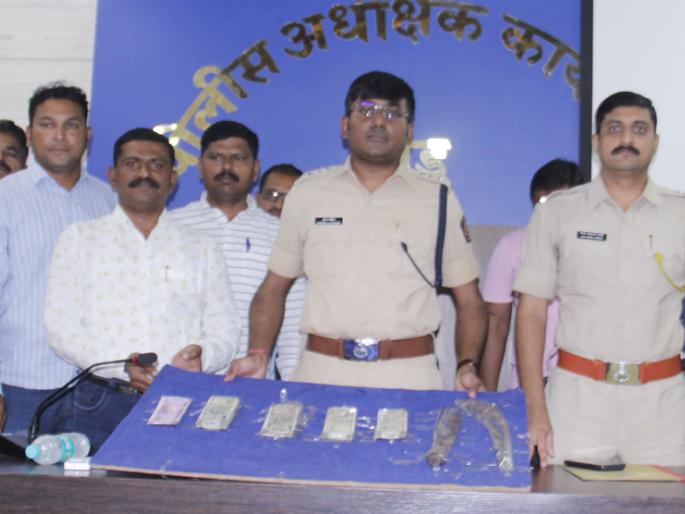 बीड : गेवराई शहरातील खडकपुरा भागातील जैन मंदीर परिसरातील (खक्का मार्केट) एका घरात दरोडेखोरांनी १ एप्रिल २०१९ रोजी चोरीच्या उद्देशाने घरातील ६१ वर्षीय महिलेचा मोबाईल चार्जरच्या वायरने गळा आवळून खून केला होता. तसेच ५ लाख व सोन्याचे दागिने चोरून नेले होेते. या खुनातील आरोपी व त्याचा साथिदार अशा दोन आरोपींना दरोडाप्रतिबंधक पथकाने गजाआड केले असून, त्यांच्याकडून इतर ४ गुन्हे देखील उघड झाले आहेत.यासंदर्भात माहिती देण्यासाठी पोलीस अधीक्षक हर्ष पोद्दार यांनी शनिवारी पोलीस अधीक्षक कार्यालयात पत्रकार परिषद घेतली. यावेळी ते म्हणाले जवळपास खून, खूनाचा प्रयत्न व जबरी चोरी यासह इतर पाच गुन्हे उघड झाले आहेत. याप्रकरणी शेख नदीम शेख लालू ( वय ३२ रा. नरानी मशीदसमोर, चिंतेश्वर गल्ली गेवराई) व सय्यद मोहम्मद उसमान अली (वय २८ रा. तपेश्वर नगर, झोपडपट्टी घाटनांदूर) या दोन आरोपींना दरोडेप्रतिबंधक पथकाने गेवराई येथून अटक केली. त्यांच्याकडून काही हत्यारे व जवळपास ३ लाख २० हजार रुपयांचा मुद्देमाल देखील जप्त करण्यात आला आहे. आणखी मुद्देमाल व गुन्हे उघड होण्याची शक्यता आहे. या कारवाईबद्दल पोलीस अधीक्षक हर्ष पोद्दार अपर पोलीस अधीक्षक विजय कबाडे यांनी दरोडाप्रतिबंधक पथक प्रमुख गजानन जाधव व पथकातील अधिकारी कर्मचाऱ्यांचे अभिनंदन केले.गेवराई येथील पुष्पाबाई शिवकुमार शर्मा असे मयत महिलेचे नाव आहे. त्या पाटबंधारे विभागातील सेवानिवृत्त सेवक होत्या. नेहमीप्रमाणे १ एप्रिल २०१९ रोजी रात्री घरात झोपल्या होत्या. दरम्यान १ एप्रिल रोजी रात्री दरोडेखोरांनी घरात प्रवेश करून कपाटात ठेवलेले नगदी ५ लाख रुपये तसेच पुष्पाबार्इंच्या हातातील सोन्याच्या बांगड्या, कानातील झुंबर, साखळी तसेच कपाटात ठेवलेल्या अंगठ्या, गंठण असा एकूण ७ लाखांपेक्षा अधिक ऐवज लंपास केला होता. हा ऐवज लुटताना पुष्पाबाई शर्मा यांनी प्रतिकार केला तेव्हा चोरट्याने मोबाईलच्या चार्जरने गळा आवळून त्यांचा खून केला होता. त्यानंतर चोरटे मुद्देमाल घेऊन पसार झाले. ही घटना सकाळी ६ वाजता उघडकीस आली होती. याप्रकरणी त्यांचा मुलगा प्रविण शर्मा यांच्या फिर्यादीवरून गेवराई पोलीस ठाण्यात गुन्हा दाखल करण्यात आला होता. हा गुन्हा दोघांनी कबुल केला आहे. त्यामुळे मागील काही महिन्यापांसून फरार असलेले आरोपी गजाआड करण्यात दरोडाप्रतिबंधक पथकाला यश आले आहे.गुन्ह्यांची साखळीयाच चोरट्यांनी गेवराई शहरातील मोंढारोड भागातील व्यापाºयाच्या घरी गेटचे कुलूप तोडून ४८ हजार रुपयांचा मुद्देमाल लंपास केला होता. हा गुन्हा देखील वरील आरोपींनी केला होता. त्याचबरोबर धनगर गल्लीमधील घर, दुकाने फोडून ५ लाख ७५ हजार ६५० रुपयांचा मुद्देमाल चोरी केला 