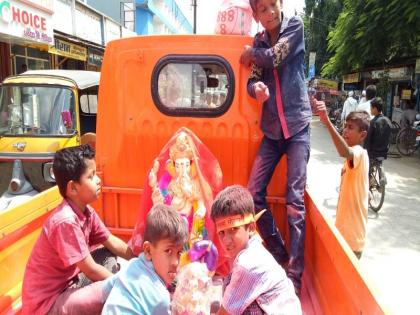 सकाळी ९ वाजता मोंढ्यातून गणरायांच्या मूर्तीची वाजतगाजत मिरवणूक निघाली
