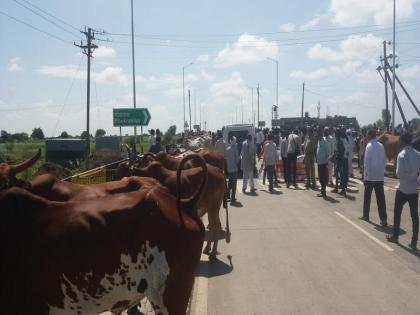 'दावणीला चारा द्या'; चाऱ्यासाठी आक्रमक शेतकऱ्यांचा जनावरांसह रास्तारोको