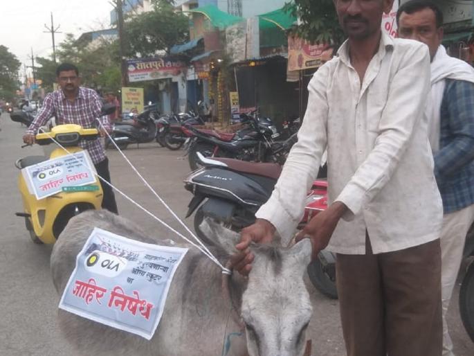 रोख रक्कम मोजून घेतलेली बाईक पडल्याने व कंफनीकडुन कसलाच प्रतिसाद न मिळाल्याने त्रस्त झालेल्या सचिन गित्ते यांनी रविवार दि.24 एप्रिल रोजी सदरील बंद पडलेली बाईक गाढवाने ओढत गांधिगीरी केली. गाढवाच्या पाठीवर सदर कंपनीचा निषेध असलेले फलक लावला. फसव्या कंपनीपासून सावध रहावे, या बाईक खरेदी करु नका असे आवाहन करत गाढवाच्या पाठीमागे बाईक बांधत आगळ्या वेगळ्या पध्दतीने निषेध नोंदवला.