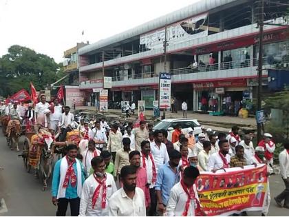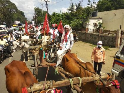 अंबाजोगाईत क्रांतिदिनी शेतकरी कामगार पक्षाचा बैलगाडी मोर्चा