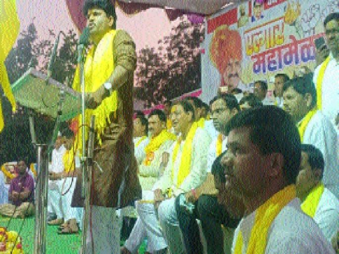 लोकमत न्यूज नेटवर्कमाजलगाव : धनगर समाजाचा जिव्हाळ्याचा असलेला आरक्षणाचा प्रश्न मागील चार वर्षांपासून रखडलेला असून शासन केवळ दिशाभूल करण्याचा प्रयत्न करत आहे. धनगर आरक्षणाचा प्रश्न तत्काळ मार्गी न लावल्यास मंत्र्यांना गावबंदी करणार असल्याचा इशारा राज्याचे नेते गोपीचंद पडळकर यांनी दिला.येथील मोंढा मैदानावर आयोजित महाएल्गार मेळाव्यात ते बोलत होते. यावेळी उत्तमराव जानकर, शिवाजी राउत, कल्याण आबुज, डॉ. भगवान सरवदे, प्रकाश गवते, माधव निर्मळ, बंडु खांडेकर यांची प्रमुख उपस्थिती होती. यावेळी बोलताना गोपीचंद पडळकर म्हणाले, आरक्षण हा धनगर समाजाचा जिव्हाळ्याचा विषय आहे. हा प्रश्न केवळ धनगड व धनगर या एका शब्दामुळे प्रलंबित आहे. शिफारस पाठवून आरक्षण मिळत नसून शासनाने परिपत्रक काढण्याची गरज आहे. धनगर समाजाच्या आरक्षणाची अंमलबजावणी झालीच पाहिजे याकरीता राज्यभर वणवा पेटला आहे. चार वर्षे झाले तरी आरक्षणावर हे सरकार काहीच बोलत नाही. दोन महिन्यात एसटीचे प्रमाणपत्र न दिल्यास मंत्र्यांना राज्यभर गावबंदी करण्याचा इशाराही त्यांनी यावेळी दिला.यावेळी प्रा. प्रकाश गवते, कल्याण आबुज, माधव निर्मळ, बंडु खांडेकर, प्रा. चामनर यांनी भाषणे केली. जिल्ह्यातून समाज बांधव बहुसंख्येने मेळाव्यास उपस्थित होते.आरक्षणप्रश्नी सरकार निरुत्तर - उत्तम जानकरयावेळी बोलतांना उत्तम जानकर म्हणाले, निवडणूकीपूर्वी आरक्षण घेतल्याशिवाय या सरकारला सोडणार नाहीत.आरक्षणप्रश्नी सरकार निरूत्तर आहे. धनगर आरक्षणाचा प्रश्न मार्गी न लावल्यास राज्यभर आंदोलन उभा करणार आहे.मराठवाड्यातून धनगर समाजाचे दोन खासदार होणार आहेत. समाज बांधवांनी एकत्रित येऊन आरक्षणप्रश्नी लढा उभरण्याची गरज असल्याचेही उत्तम जानकर यांनी सांगितले.