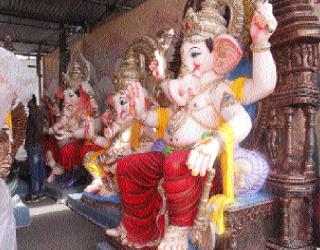 बाप्पांच्या मूर्तीसाठी बीडमध्ये पावसात गर्दी