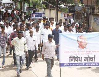 बीड : गेवराईत शरद पवारांच्या समर्थनात राष्ट्रवादीचा मोर्चा; काळ्या फिती बांधून सरकारचा निषेध