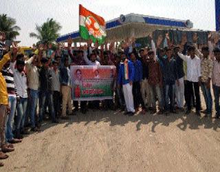 बीड : Video : परळीत युवक कॉंग्रेसच्या आंदोलनात पेट्रोल पंपावर दगडफेक