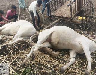 निसर्ग कोपला! ऐन हंगामात खिल्लार बैलजोडीचा वीज कोसळून मृत्यू, शेतकऱ्याच्या डोळ्यात अश्रु