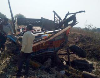 गेवराईजवळ खांडवी फाट्यावर उसाचा ट्रक उलटून चालक ठार