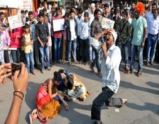 बीड : घेऊ नको रे फाशी, जग राहील उपाशी !; साहित्य संमेलनाच्या जागरदिंडीत शेतकर्‍यांवर पथनाट्य