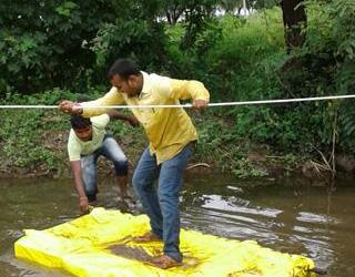 रस्ता नसल्यामुळे होडीच्या आधारे जीवघेणा प्रवास