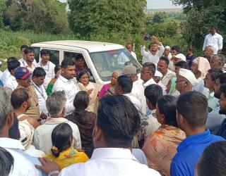 बीड : अतिवृष्टीने बाधित शेतकऱ्यांचा संताप; ताफा अडवत बीड जिल्हाधिकाऱ्यांवर प्रश्नांचा भडिमार!
