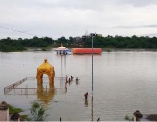 जायकवाडीतून पुन्हा विसर्ग; गोदावरीच्या पुराने पांचाळेश्वर, राक्षसभुवन येथील मंदिरे पाण्याखाली