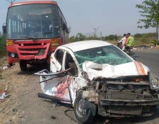 बीड : भरधाव वेगातील अनियंत्रित कार बसवर धडकली; कारमधील चार मद्यधुंद प्रवासी गंभीर जखमी