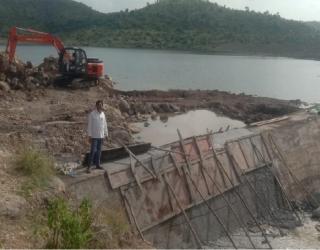 ग्रामस्थांच्या आंदोलनास यश; आरणवाडी तलावाचा फोडलेला सांडवा बांधण्यास सुरूवात