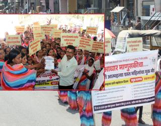 Beed: अंबाजोगाईत आत्महत्याग्रस्त शेतकर्यांच्या विधवा पत्नींचा निघाला मुक मोर्चा