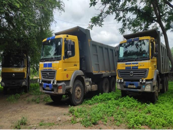 गेवराई : तालुक्यातील राक्षसभुवन येथे अवैध वाळू उपस्याच्या उद्देशाने आलेले १५ हायवा ट्रक, जेसीबी चकलांबा पोलिस व महसुल विभागाच्या पथकाने जप्त केले आहे. ही कारवाई आज पहाटे ५ वाजेच्या सुमारास करण्यात आली. तब्बल ४ कोटींचा मुद्देमाल जप्त करून पोलीस आणि महसूल पथकाने वाळू माफियांना दणका दिला आहे.