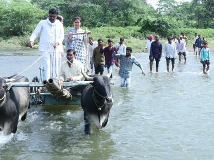 बीड : परतीच्या पावसाने महाराष्ट्रासह बीड जिल्ह्यात तीन आठवड्यासापूसन थैमान घातले आहे. तीन वर्षांपासून दुष्काळात होरपळणाºया शेतक-यांचा पाण्याचा प्रश्न मिटला असला तरी, अतिवृष्टीमुळे खरीप हंगाम हातचा गेला आहे. कापूस, सोयाबीन, मका, बाजरी या पिकांचे नुकसान झाले आहे. या परिस्थितीत लोकप्रतिनिधी व शासन शेतकºयांच्या पाठीशी खंबीरपणे उभा आहे. विमा कंपनीच्या सर्व जाचक अटी व नियमांची कोणतीही काळजी नये. नुकसानग्रस्त प्रत्येक शेतक-याच्या खात्यावर शासनाचे अनुदान जमा पोहचेल, असे मत खासदार डॉ. प्रीतम मुंडे यांनी व्यक्त केले.जिल्ह्यातील नुकसान झालेल्या पिकांची पाहणी खा.मुंडे यांनी केली. बीड तालुक्यातील पेंडगाव, माळापुरी, औरंगपूर, भाटसांगवी, वाकनाथपूर, उंब्रज खालसा, नागपूर, इट, पिंपळनेर, ताडसोन्ना या गावांचा दौरा त्यांनी दौरा केला. यावेळी आ. लक्ष्मण पवार, भाजपा युवा राजेंद्र मस्के यांची देखील उपस्थिती होती.राजेंद्र मस्के यांनी यांनी देखील शेतक-यांशी संवाद साधला. शेतकºयांना धीर देत विमा असो अथवा नसो प्रत्येक शेतकºयांला नुकसान भरपाई मिळण्यासाठी शासनाकडे मागणी केल्याचे सांगितले. नुकसानग्रस्त शेतक-यांना अनुदान मिळवून देण्यासाठी सर्व लोकप्रतिनिधी प्रयत्नशील आहेत. दुष्काळात तीन वर्षांपासून पिचलेल्या शेतकरी वर्गाचा आर्थिक कणा खरीप हंगाम गेल्याने नेस्तनाबूत झाला आहे. पावसाच्या आगमनाने शेतकरी वर्ग सुखावला होता परंतु अतिवृष्टीमुळे पिकांचे नुकसान झाले आहे. कर्जाच्या ओझ्यातही नवी भर पडल्याने शेतकरी शेतमजूर त्रस्त झाला आहे. अशा अस्मानी संकटात सापडलेल्या शेतकरी बांधवांना सरसकट कर्जमाफी दिली तर ती नवसंजीवनी ठरेल अशी आशा राजेंद्र मस्के यांनी यावेळी व्यक्त केली. तसेच खा. डॉ. प्रीतम मुंडे यांनी हा मुद्दा लोकसभेत उपस्थित करावा आणि शेतकºयांना अनुदान लवकरात लवकर मिळवून द्यावे, अशी मागणी त्यांनी केली.मुंडे यांनी बैलगाडीतून केली पाहणीपिकांची पाहणी करण्यासाठी एका नदीतून बैलगाडीच्या सहाय्याने डॉ.प्रीतम मुंडे यांनी प्रवास केला. व नदी ओलांडून वाकनाथपूर येथील शेतक-यांशी संवाद साधल्याने येथील ग्रामस्थांना दिलासा मिळाला. तसेच अनेकांनी खा. मुंडे यांच्यापुढे त्यांचे प्रश्न मांडले. यावेळी त्यांनी देखील मोकळेपणाने या सर्व प्रश्नांचे निराकारण केले. तसेच शासनाला परिस्थितीची जाणीव असून सर्वांना नुकसानभरपाई मिळेल असे आश्वासन त्यांनी उपस्थितांना दिले.