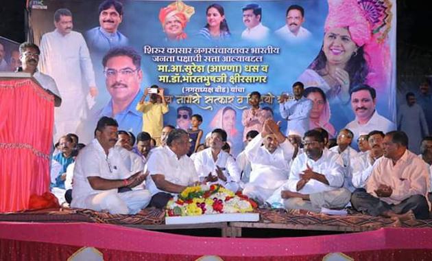 लोकमत न्यूज नेटवर्कशिरूर कासार : आ. सुरेश धस हे राजकारणातील ‘माऊली’ असल्याचे संबोधन देत आता ते तीन जिल्ह्यांत राजकीय कीर्तन करतात. राजकारणात काम करणारे ते भूतच आहे, अशा शब्दात बीडचे राष्टÑवादी काँग्रेसचे नगराध्यक्ष डॉ. भारतभूषण क्षीरसागर यांनी धसांची प्रशंसा करून आपल्या राजकीय मैत्रींची साक्ष दिली.शिरूर नगर पंचायतमध्ये सत्तांतर झाल्यानंतर नवनिर्वाचीत अध्यक्ष व उपाध्यक्ष यांचा सत्कार सोहळा विधान परिषदेचे आमदार सुरेश धस आणि बीडचे नगराध्यक्ष भारतभूषण क्षीरसागर यांच्या प्रमुख उपस्थितीत रविवारी सायंकाळी नगर पंचायतच्या पटांगणात संपन्न झाला. या सत्कार सोहळ्यात शहराच्या विकासाबाबत शब्दांचा पाऊस पडला, त्याचबरोबर विरोधकावरही सडकून टीकेची गारपीटच झाली. सोहळ्यादरम्यान भारतभूषण क्षीरसागर यांनी संथ, पण दमदार भाषणातून नगर पंचायतला आवश्यक ते सहकार्य करण्याचे आश्वासन दिले.अध्यक्षस्थानी न. पं.च्या प्रथम महिला अध्यक्ष मीराताई गाडेकर होत्या. प्रमुख मार्गदर्शक म्हणून आ. सुरेश धस, बीडचे नगराध्यक्ष डॉ. भारतभूषण क्षीरसागर, वडवणीचे राजाभाऊ मुंडे यांची प्रमुख उपस्थिती होती. प्रमुख पाहुणे म्हणून जि.प. सदस्य शिवाजी पवार, माऊली जरांगे, प्रकाश कवठेकर, रामहरी महानोर, डॉ. मधुसूदन खेडकर, विलास विधाते, शेख सादीक, विनोद मुळूक, गणेश वाघमारे,आश्रूबा खरमाटे, निवृत्ती बेदरे, अॅड. प्रकाश बडे, अशोक सव्वासे, सेवानिवृत्त पोलीस अधिकारी रावसाहेब पाटील आदी होते.प्रास्ताविक भाषणात प्रकाश देसरडा यांनी भूमिका मांडली. त्यानंतर अश्विनी भांडेकर, वर्षा सानप, आशा शिंदे या महिला नगरसेविकांसह संदीप पाटील, सुनील पाटील यांनी मनोगत व्यक्त केले. राजाभाऊ मुंडे यांनी वडवणीच्या विकासाचे गमक सांगितले. क्षीरसागर यांनी शिरूर न.पं.ला सर्वतोपरी सहकार्य करण्याचे सांगून बीडचा अनुभवी कर्मचारी वर्ग गरजेनुसार देण्यात येईल. विकास कामाची घाई करू नका, त्यात चुका होतात याचा अनुभव मला आल्याचे सांगितले. सर्वंकष आराखडा तयार करा व टप्प्याने काम करा, असे सांगून आदर्श नगर पंचायत होण्यासाठी सहकार्य करू. उद्यान, क्रीडांगण, व्यापारपेठेचे पुनरुज्जीवन आदींबाबत माहिती देत शिरूरला दोन आण्णा असल्याने काही उणीव भासणार नाही. आ. धस यांच्याबाबत ठेवलेली सद्भावना कारणी लागली असल्याचे सांगून वारसा आणि वसा सांभाळत सहकार्य करण्याची स्व. काकू व स्व. मुंडे यांची परंपरा आम्ही पक्षविरहित सांभाळत असल्याचे सांगितले. त्यानंतर आ. धस यांनीही आपले मनोगत व्यक्त केले. सूत्रसंचलन फय्याज शेख यांनी केले, तर आभार दत्ता पाटील यांनी मानले. यावेळी शिरूरसह पंचक्रोशीतून लोकांनी गर्दी केली होती.राजकीय उलथापालथ : न.पं.मध्ये सत्तांतरसुरू