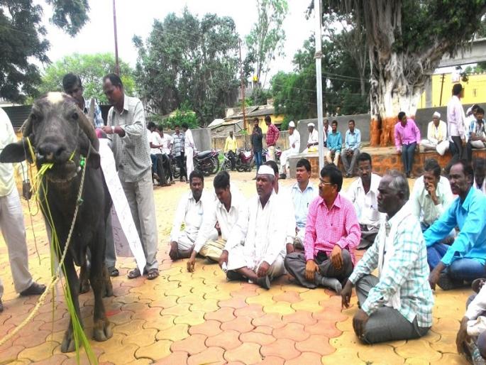 आंदोलकांनी रेड्याला बांधले पाटोदा तहसील कार्यालयाच्या गेटवर; केली 'ही' मागणी