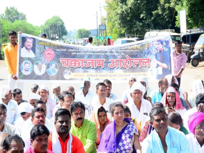 अंबाजोगाई : बीड जिल्ह्यात सतत १५ दिवस पडलेल्या बेमोसमी मुसळधार अतिवृष्टीने खरिप हंगामातील सोयाबीन, कापूस,तूर,उडीद, मूग,मका,हायब्रीड ज्वारी, बाजरी आदी सर्वच पिकांचे अतोनात नुकसान झाले असून अतिवृष्टी ग्रस्त शेतकऱ्यांना सरसकट हेक्टरी एक लक्ष रु नुकसान भरपाई व सरसकट पीकविमा तात्काळ वाटप करण्याच्या मुख्य मागणीसाठी स्वाभिमानी शेतकरी संघटना केज,अंबाजोगाई तालुक्याच्या वतीने लोखंडी सावरगाव ता.अंबाजोगाई येथे बुधवारी ( दि ६ ) सकाळी १० वाजता तब्बल २ तास चक्काजाम आंदोलन करण्यात आले. या आंदोलनामुळेबीड-लातुर-अंबाजोगाई-कळंब महामार्गावर दुतर्फा शेकडो वाहने अडकून पडली होती.
