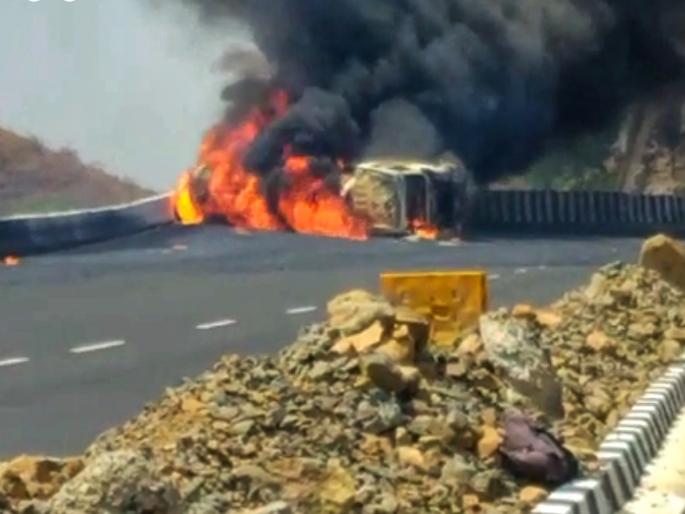 विशाखापट्टनमकडून गुजरात राज्यात रसायन घेऊन टँकर (क्र.जीजे १६ एव्ही ६१७७) जात होता. ट्रक मांजरसुंबा घाटात येताच अचानक चालकाचे नियंत्रण सुटल्यामुळे टँकर उलटला झाला. रसायन असल्यामुळे टँकरने पेट घेतला. अचानक झालेल्या अपघातामुळे टँकरने पेट घेतला. यावेळी मोठी आग लागली होती, यावेळी परिसरातील नागरिकांनी तत्काल टँकरकडे धाव घेतली. मात्र, आगीने रौद्र रुप धारण केले होते. जखमीला दवाखान्यात पाठवण्यात आले. तसेच पोलिसांना व अग्निशमन दलाला या घटनेची माहिती देण्यात आली. त्यानंतर पोलिसांनी व अग्निशमनच्या जवानांना ही आग आटोक्यात आणली. त्यानंतर पोलीस कर्मचाऱ्यांनी घाटातील वाहतूक सुरळीत केली.