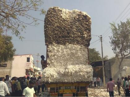 थरारक ! कापसाने खचाखच भरलेल्या ट्रकने घेतला पेट