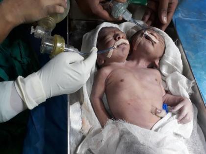 बीड - अंबाजोगाई येथील शासकीय वैद्यकीय महाविद्यालय व रुग्णालय विभागाच्या प्रसूती विभागात रविवारी (29 ऑक्टोबर ) रात्री 8.30 वाजण्याच्या सुमारास दोन तोंड असलेल्या बाळाचा जन्म झाला. या विभागातील प्रख्यात सर्जन व सहयोगी प्राध्यापक डॉ. संजय बनसोडे व त्यांच्या सहकाऱ्यांनी ही अवघड शस्त्रक्रिया यशस्वीरित्या पार पाडली असून बाळ-बाळंतीण सुखरूप आहेत. बाळाच्या प्रकृतीवर देखरेख ठेवण्यासाठी त्याला शिशू अतिदक्षता विभागात ठेवण्यात आले आहे.