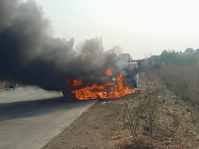 या बाबतची माहिती अशी की, लातूर येथील सीए गणेश महापुरकर हे आज सकाळी ८:३० वाजेच्या सुमारास लातूर येथून कारने (एमएच-४८/एस-२८५२) बीडकडे जात होते. कारमध्ये सीए महापूरकर यांच्यासह पाचजण होते. सकाळी साडेनऊच्या दरम्यान, कुंबेफळजवळ येताच कारच्या समोरच्या बाजूने धूर निघत असल्याचे चालकाच्या लक्षात आले. यामुळे चालकाने लागलीच कार रस्त्याच्या बाजूला घेत उभी केली.