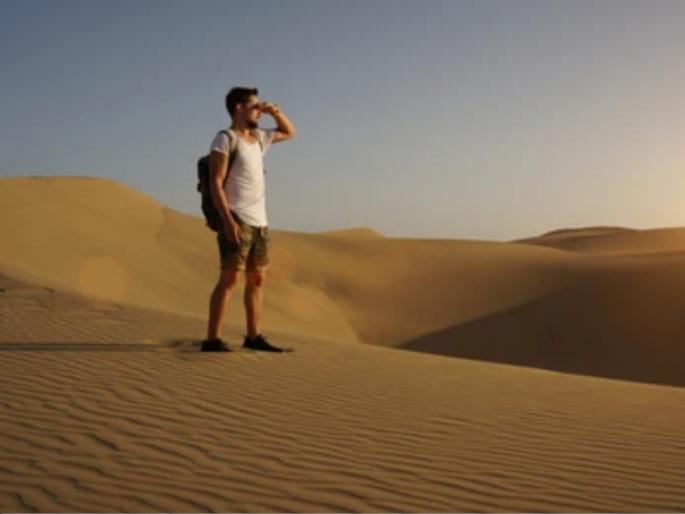 एक माणूस वाळवंटातून चालत प्रवास करत असतो. दूर दूरवर त्याला वाळूशिवाय काहीच दिसत नाही. जवळचे पाणीदेखील संपलेले असते. त्याला कंठशोष पडलेला असतो. पाणी मिळण्याची थोडीही आशा दिसत नाही. तरी तो चालत असतो.