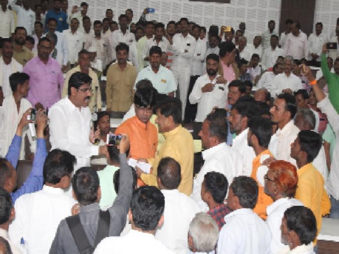 लोकमत न्यूज नेटवर्कजालना : जालनाजिल्हा परिषदेत सिंचन विहिरींच्या मुद्यावरून शुक्रवारी स्थायी समितीची सभा सुरू होण्यापूर्वीच परतूर तालुक्यातील खांडवसह अन्य गावातील जवळपास २०० शेतकरी थेट सभागृहात शिरल्याने मोठा गोंधळ उडाला. यावेळी या शेतकºयांनी सिंचन विहिरींच्या मुद्यावरून सभागृहात जोरदार घोषणाबाजी केल्याने वातावरण तापले होते. त्यातच सिंचन विहिरीच्या प्रश्नावरून जिल्हा परिषद सदस्य राहुल लोणीकर तसेच जिल्हा परिषदेचे अध्यक्ष अनिरूध्द खोतकर, उपाध्यक्ष सतीश टोपे यांच्यात खडाजंगी झाली. याचवेळी न्यायायलीन आदेशानुसार मुख्य कार्यकारी अधिकाºयांची खूर्ची जप्त केल्याने या गोंधळात आणखी भर पडली. यामुळे आजची स्थायी सभा तहकूब करण्याचा निर्णय अध्यक्ष खोतकर यांनी जाहीर केला.गेल्या वर्षभरापासून सिंचन विहिरींच्या मुद्यावरून जिल्हा परिषदेच्या मुख्य कार्यकारी अधिकारी आणि जि.प. सदस्य राहुल लोणीकर यांच्यात वाद आहे. एकट्या परतूर तालुक्यातील सिंंचन विहिरी मंजूर करताना प्रशासनाच्या म्हणण्यानुसार प्रशासकीय निकष डावलेले गेल्याने ८० शेतकºयांच्या विहीरींच्या कामाला आडकाठी आणली जात आहे. यासाठी मंत्रालय पातळीवर राहुल लोणीकर यांनी पालकमंत्री बबनराव लोणीकर यांच्या मार्फत पाठपुरावा करून जास्तीच्या सिंचन विहिरींना प्रशासकीय मंजुरी आणल्याचे सभागृहात सांगितले. मात्र जिल्हाधिकाºयांनी दोन दिवसांपूर्वी अभ्यास करून जिल्ह्यातील जवळपास ७७६ विहिरींची मान्यता रद्द केल्याचा अहवाल जिल्हा परिषदेचे अध्यक्ष खोतकर आणि उपाध्यक्ष टोपे यांनी लोणीकर यांच्याकडे सोपविला, मात्र तो त्यांना मान्य नसल्याचे त्यांनी सांगितल्याने या गोंधळात भर पडली.मुख्य कार्यकारी अधिकारी निमा अरोरा या भोकरदन येथे पाणी टंचाई आढावा बैठकीसाठी गेल्या होत्या. प्रथम त्यांना बोलावा असा आग्रह सभागृहातील शेतकºयांनी लावून धरला. शेवटी अरोरा यांना ती बैठक अर्धवट सोडून जालन्यात परतावे लागले. त्यांनी आल्यावर शेतकºयांशी संवाद साधला. यावेळी त्यांनी माझा विहिरी नामंजूर करण्यात कुठलाच स्वार्थ नाही. परंतु जर काही चुकीची कामे झाली असतील त्यांना रोखणे हे माझे कर्तव्य असल्याने आपण थेट प्रत्यक्ष पाहणी करून नंतर तो अहवाल जिल्हाधिकाºयांकडे पाठविल्याचे सांगितले. हा गोंधळ सायंकाळ पर्यंच चालल्याने कामकाज ठप्प झाले होते.लेखी आश्वासनाने समाधानएवढे सर्व शेतकरी येथे येण्या ऐवजी माझी वैयक्तिक भेट घेतली असती तर हा प्रश्न सुटला असता असे मुख्य कार्यकारी अधिकारी निमा अरोरा यांनी सांगून आलेल्या शेतकºयांचे समाधान केले. तसेच सिंचन विहिरी संदर्भात लेखी आश्वास दिल्यानंतर सकाळपासून आलेले शेतकरी सायंकाळी स