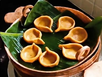 पाव वाटी गूळ बुडेल एवढे पाणी घेऊन गूळ पूर्ण वितळवून घ्यावा. एक वाटी कणिक अर्थात गव्हाचे पीठ घेऊन त्यात चिमूटभर मीठ, दोन चमचे तूप कणकेत एकत्र करून गरज लागेल त्याप्रमाणे गुळाचे पाणी टप्प्याटप्प्याने घालून कणिक तिंबून घ्यावी. त्याचे पुऱ्यांसाठी करतो तेवढे गोळे करून त्यांना दिवा, पणतीचा आकार द्यावा. एका चाळणीला तेलाचा किंवा तुपाचा हात लावून त्यात दिवे ठेवावे. एका मोठ्या पातेल्यात पाणी घेऊन त्यावर अलगद राहील अशा बेताने चाळणी ठेवावी आणि वर ताट ठेवून पातेले झाकावे. हे दिवे इडली पात्रातही करता येतात. जवळपास २० मिनिटे दिवे शिजू द्यावेत मग गॅस बंद करून दिवे थोडे गार झाल्यावर त्यात साजूक तूप घालून खावेत.