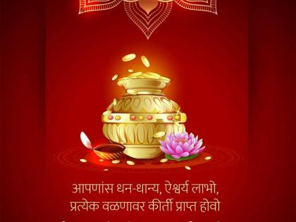 Dhanteras 2025 Wishes in Marathi: १८ ऑक्टोबर २०२५ (शनिवार) रोजी धनत्रयोदशी (Dhanteras 2025) आहे. त्यात शनि प्रदोषदेखील आहे. या शुभ मुहूर्तावर तुमच्या मित्रमंडळींना, नातेवाईकांना धनत्रयोदशीचे शुभेच्छा संदेश पाठवून त्याची आर्थिक आणि आरोग्याच्या दृष्टीने बरकत होवो म्हणून सदिच्छा व्यक्त करा.
